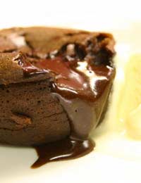 To make this fabulously tasty dessert you will need 200g of dark gluten-free chocolate, 150g of butter, 2 teaspoons of vanilla extract, 200 ml of warm (not boiling) water, 100g of caster sugar, 4 eggs, 25g of rice flour, 1 teaspoon of gluten-free baking powder and a two pint pie dish.